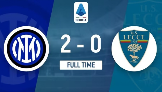 全场比赛结束,国际米兰2-0莱切。
